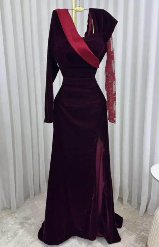 الصفحة الرئيسية اثاث فستان مخمل + يد دانتيل