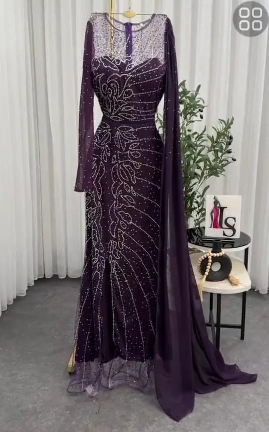 فستان لبانه مغطى بتل مطرز